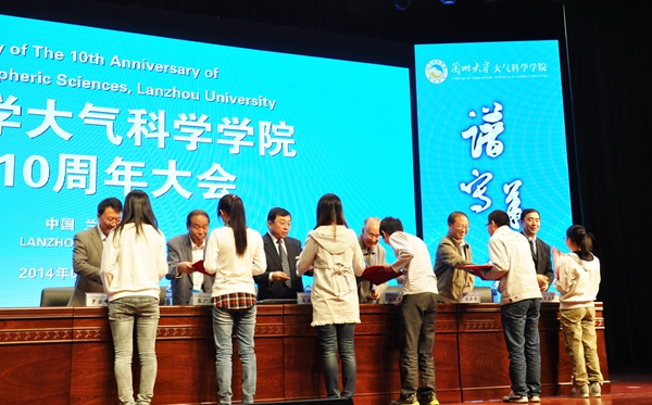 会上,兰州大学大气科学学科的元老王玉玺老先生赋诗一首,并亲笔题赠学校。徐生诚代表学校接受了王老先生的捐赠。学院还颁发了大气科学学院首届“杰出大气学子”奖学金,6名优秀本科生获奖。该奖学金由丑纪范院士和黄建平教授共同捐资设立,旨在奖励学院优秀本科生,鼓励学生勤勉治学、勤谨为人。